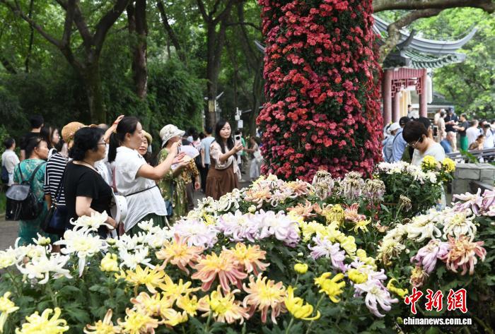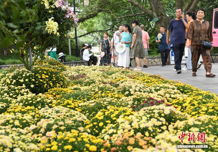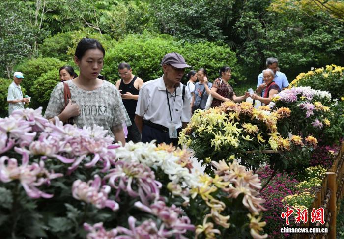 10月7日,2025年重庆鹅岭公园菊展吸引民众前往参观。中新社记者 周毅 摄