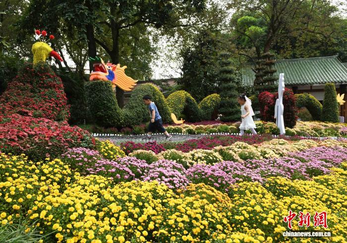 10月7日,2025年重庆鹅岭公园菊展吸引民众前往参观拍照。中新社记者 周毅 摄