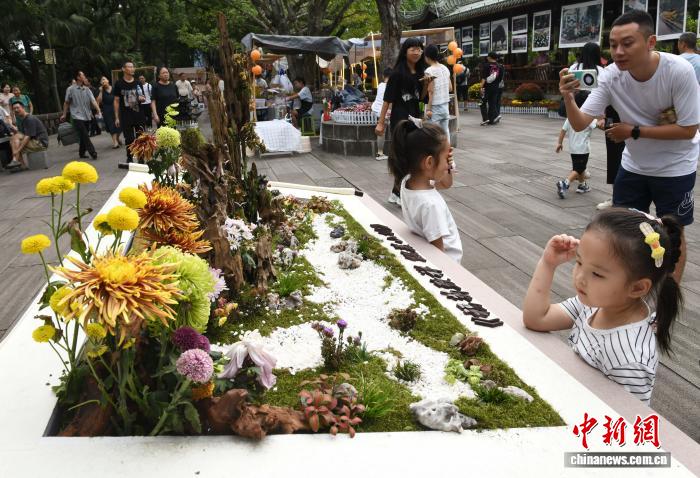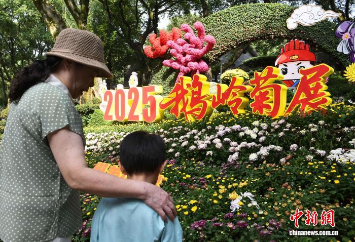 10月7日,2025年重庆鹅岭公园菊展吸引小朋友。中新社记者 周毅 摄