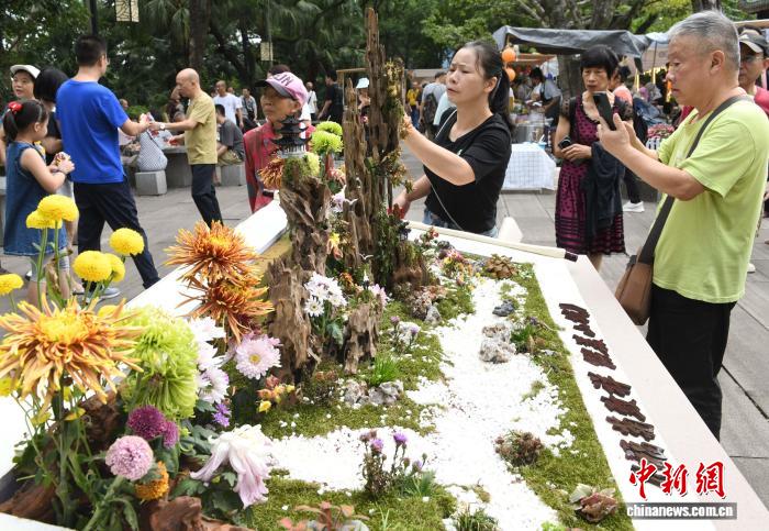 10月7日,2025年重庆鹅岭公园菊展吸引市民前往参观。中新社记者 周毅 摄